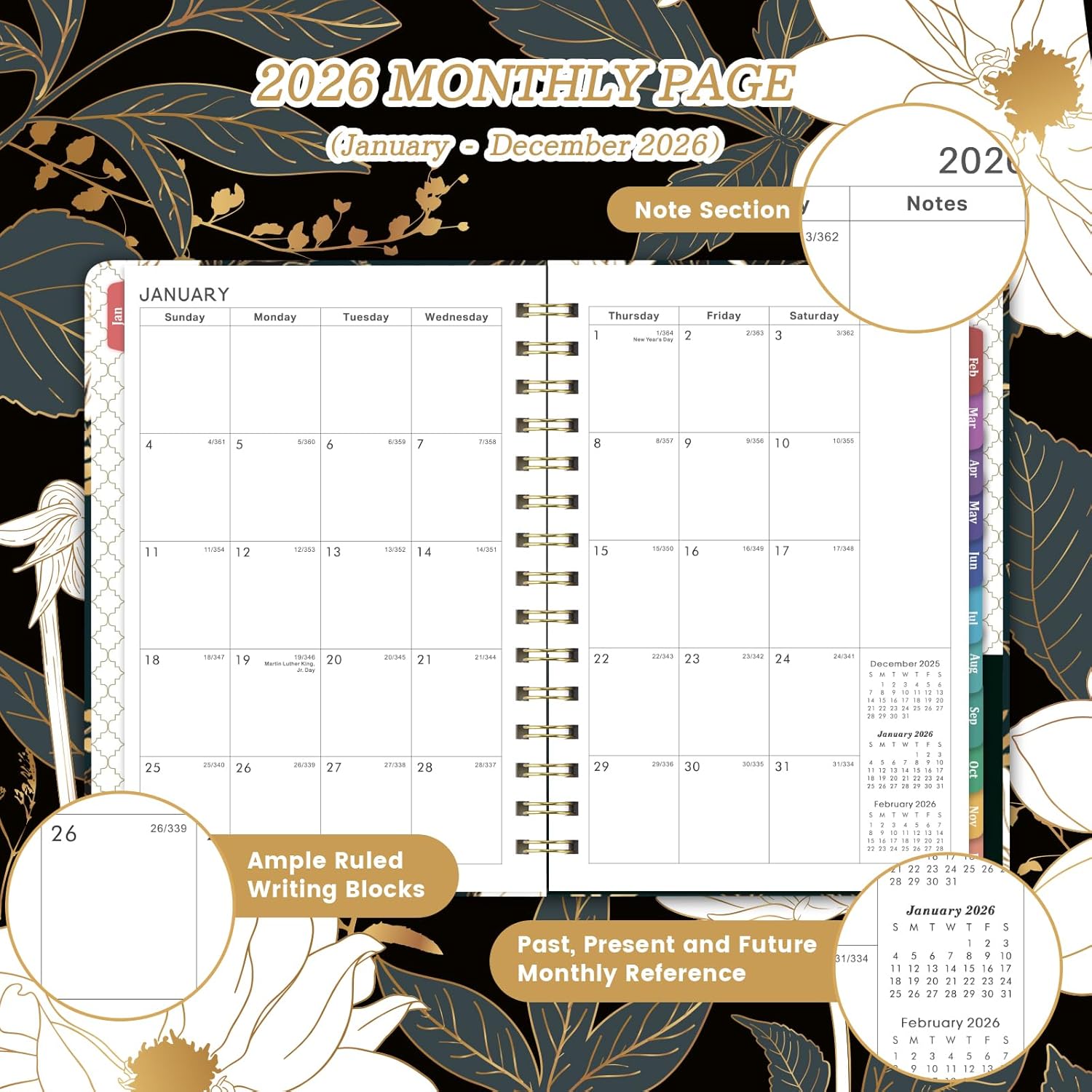 Features About This 2026 Planner with 12 Monthly Tabs