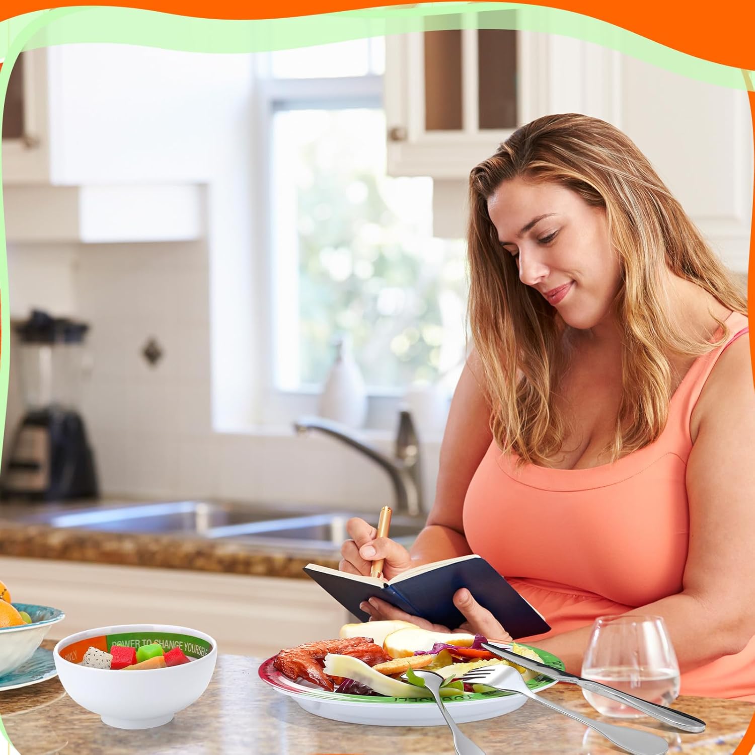 Portion Control: the silverware flatware set is not just serving ware, it is a portion control starter kit, designed to help control your portions and maintain a healthy, balanced diet; Our plates are marked with helpful measurements for protein, vegetables, and carbs ratio, bowls are cup capacity on it, thereby promoting balanced eating and facilitating weight loss journey