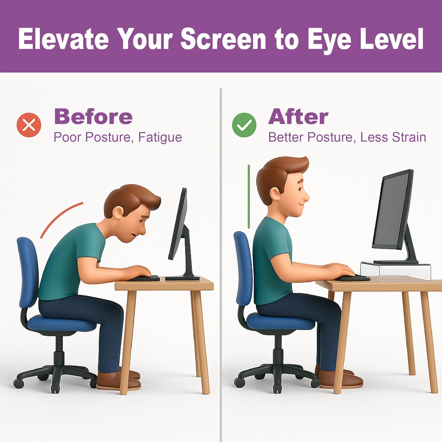 Elevate Your Viewing Comfort: Instantly raise your monitor screen by 3-3/8 inches to eye level, promoting better posture and reducing neck, back, and eye strain. Achieve a truly ergonomic and healthy workspace.