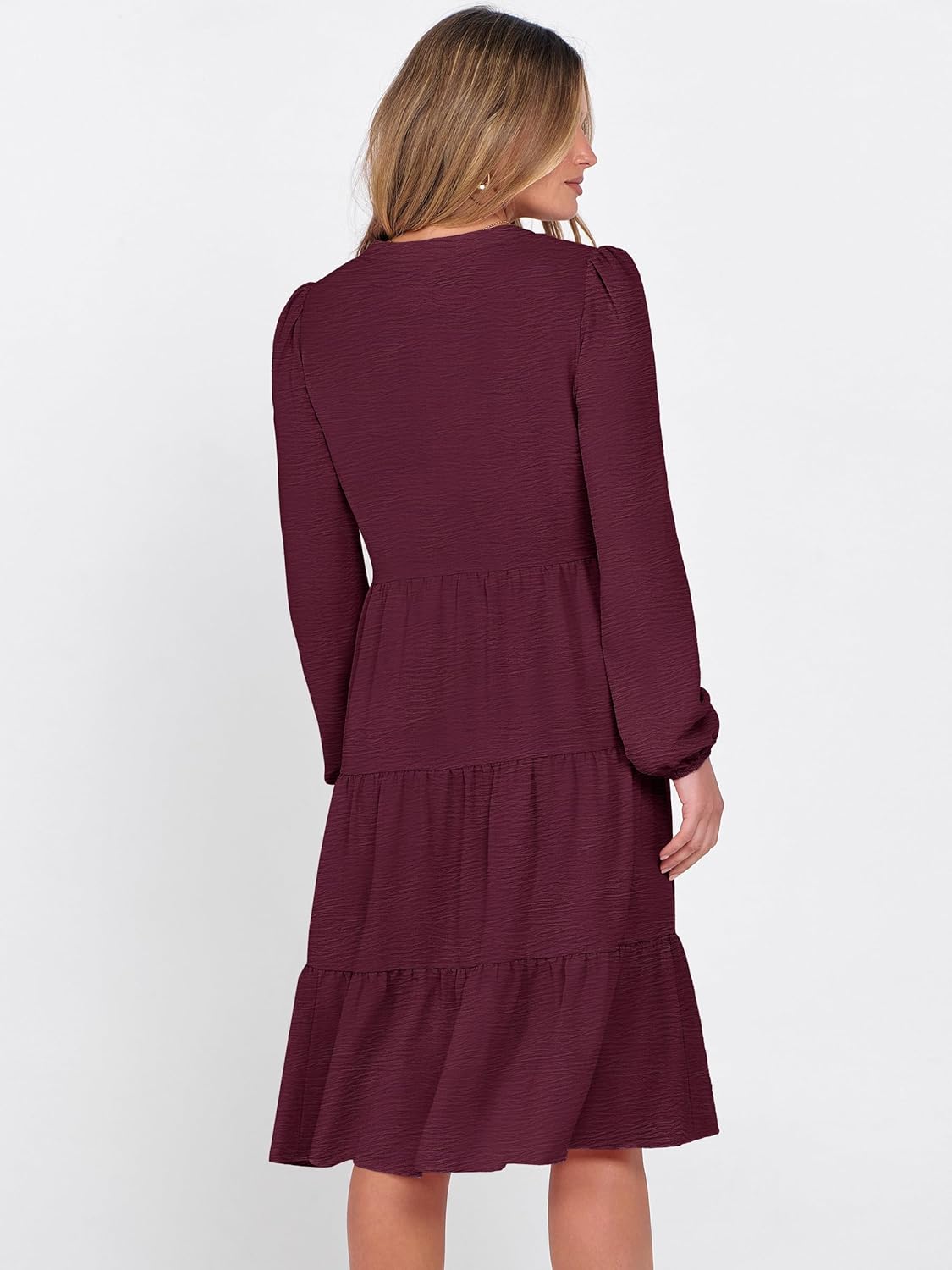 8 reviews for ANRABESS Womens Fall Midi Dresses Long Sleeve V Neck Swing Tiered Work Business Casual 2025 Flowy Beach Vacation Dress