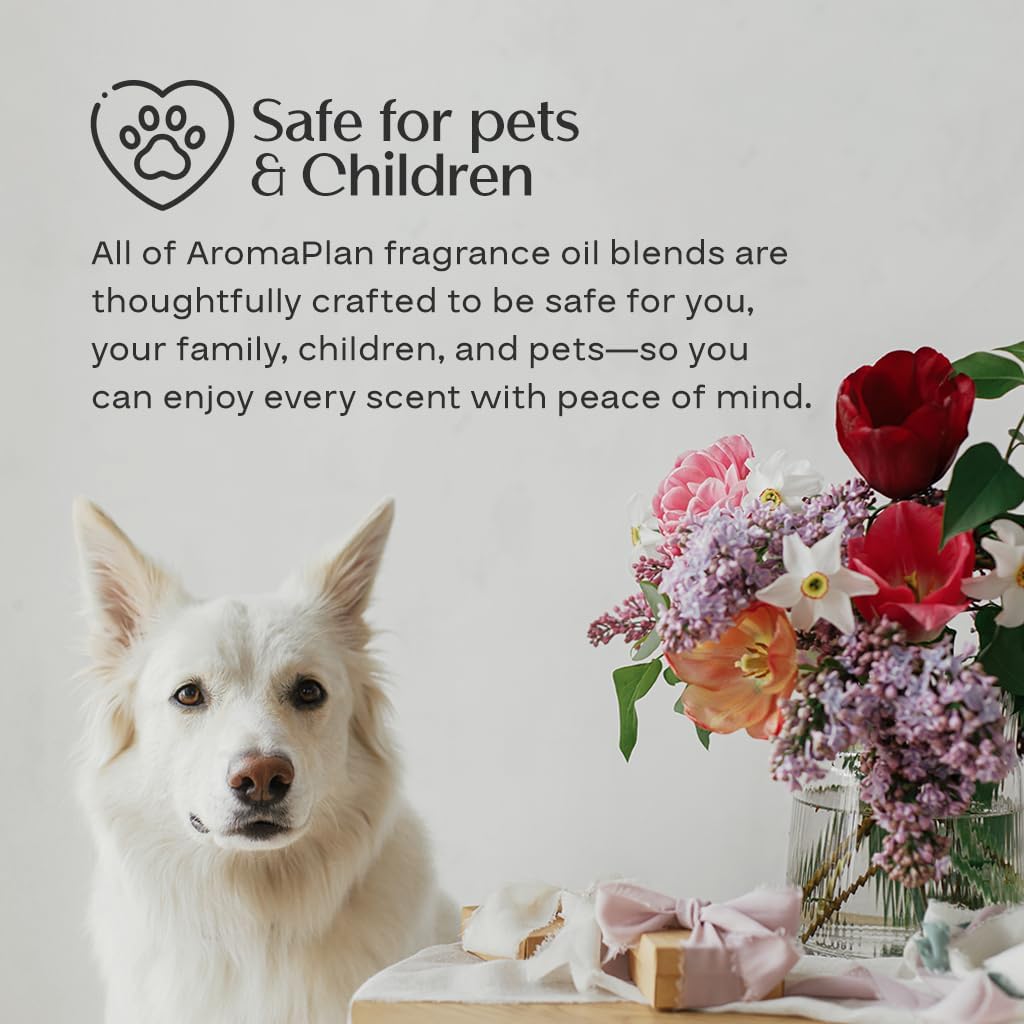 SAFE FOR PETS, CHILDREN, AND THE ENVIRONMENT: Our Spring Collection is completely safe for use around pets and children, offering a worry-free way to freshen your home. Additionally, Aromaplan fragrances are non-flammable and environmentally friendly, ensuring a safe and eco-conscious choice for your family.