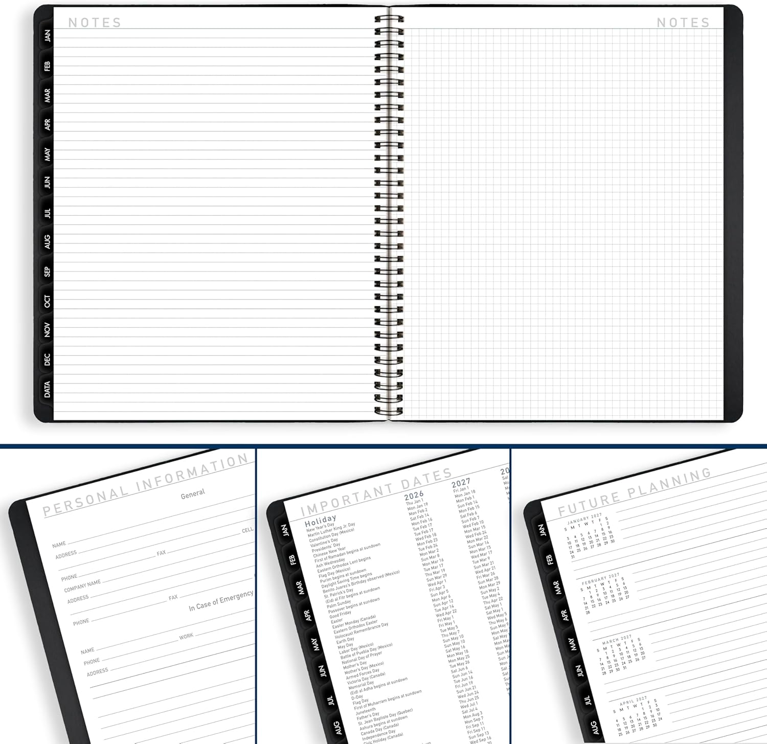 ENHANCED ORGANIZATION – Expand your organizational skills. Special pages include over 40 notes pages, a 3-year reference calendar, future planning, important dates and a double-sided poly pocket.
