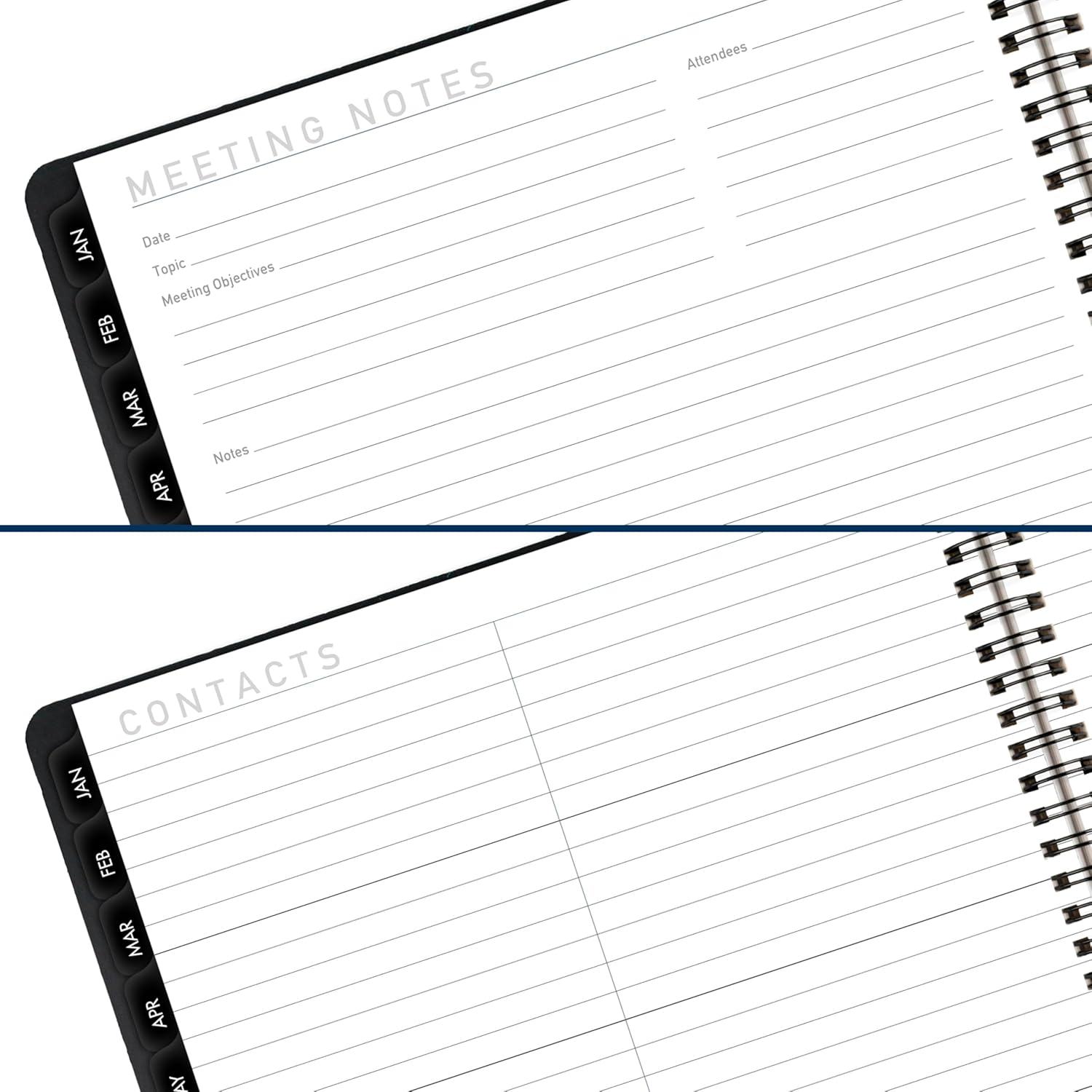 Clear and simple organization to help you stay ahead of the curve. The AT-A-GLANCE Contemporary Monthly Planner covers 12 months from January 2026 — December 2026 with Julian dates. Guaranteed to last all year.* Modern foil accents enhance the stylish black cover for a touch of sophistication. Plan your schedule without fear of distracting ink bleeding. Our high-quality paper features ink bleed resistance to keep your planning pages neat. Plan, execute, succeed! Monthly unruled pages provide an ideal planning structure for tracking deadlines, goals and appointments. Months are tabbed for easy navigation. The months also feature a ruled column for notes and past-future reference calendar blocks. Pages measure 9″ x 11″. Daily blocks measure 1-15-16″ x 1.75″. Accomplish more. Extensive planning features for next-level organization include 40 notes pages, future planning pages, 3-year reference calendar, important dates, meeting notes and contacts. Store loose sheets in the double-sided poly pocket. Professional materials for professional organization. The flexible faux leather cover secures your schedule while the strong twin wire binding helps prevent snags and keeps pages secure. *ACCO Brands will replace any defective AT-A-GLANCE planer that is returned within one year from date of purchase or delivery, whichever is longer. This guarantee does not cover damage due to misuse or abuse.