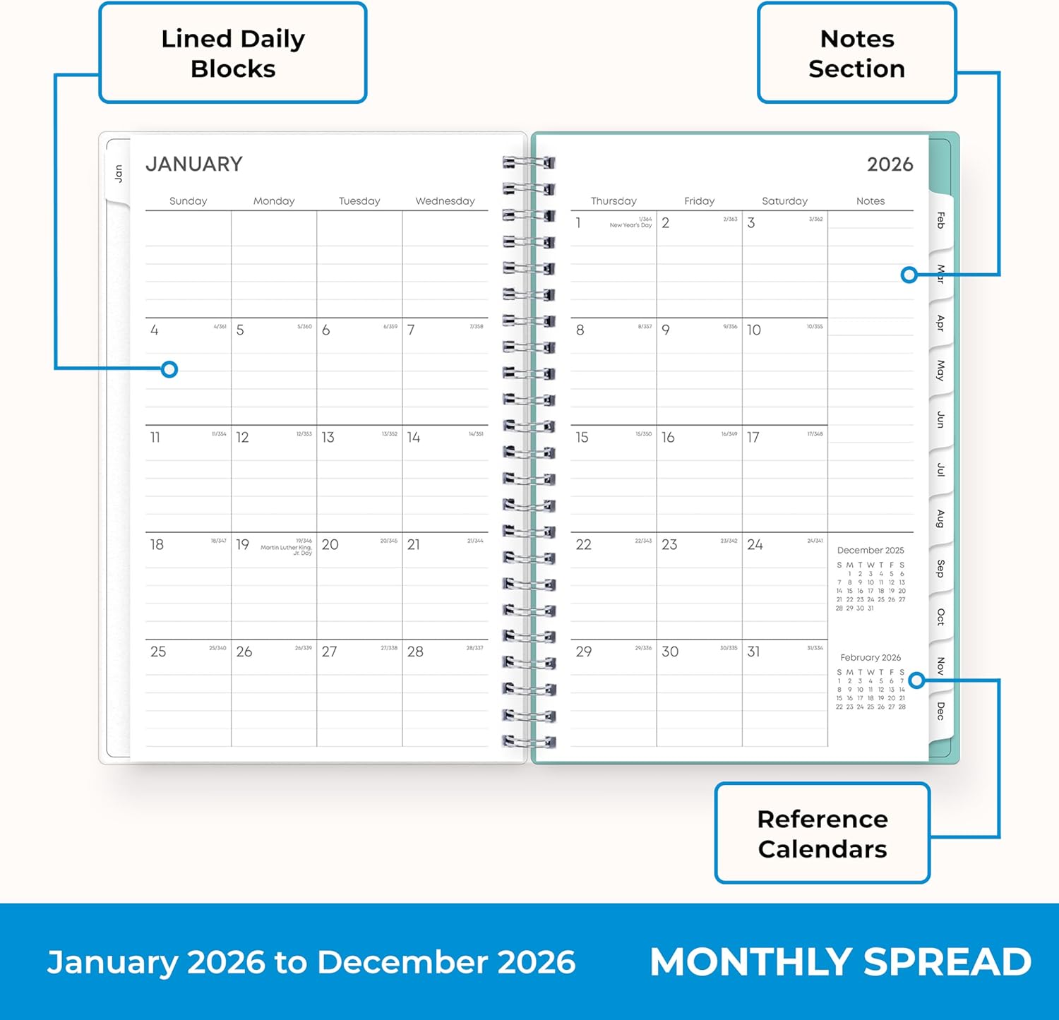 [STAY ORGANIZED ALL YEAR] January 2026 – December 2026 planner with 12 months of monthly and weekly pages for easy year-round planning and scheduling; 6 additional monthly pages (July 2025 – December 2025) are included