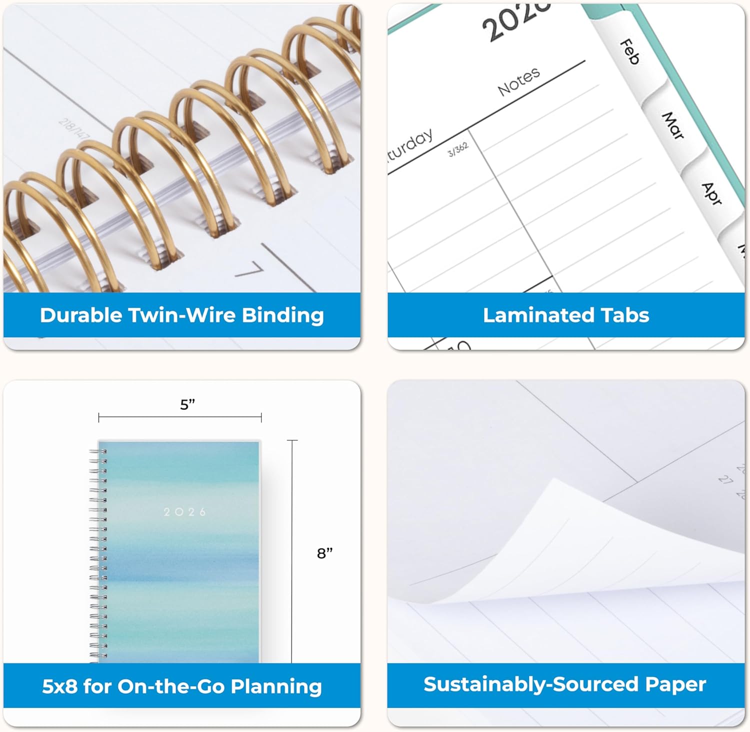 9 reviews for Blue Sky 2026 Weekly and Monthly Planner Calendar, January 2026 – December 2026, 5″ x 8″, Flexible Frosted Cover, Laminated Tabs, Durable Twin Wire Binding, Chloe