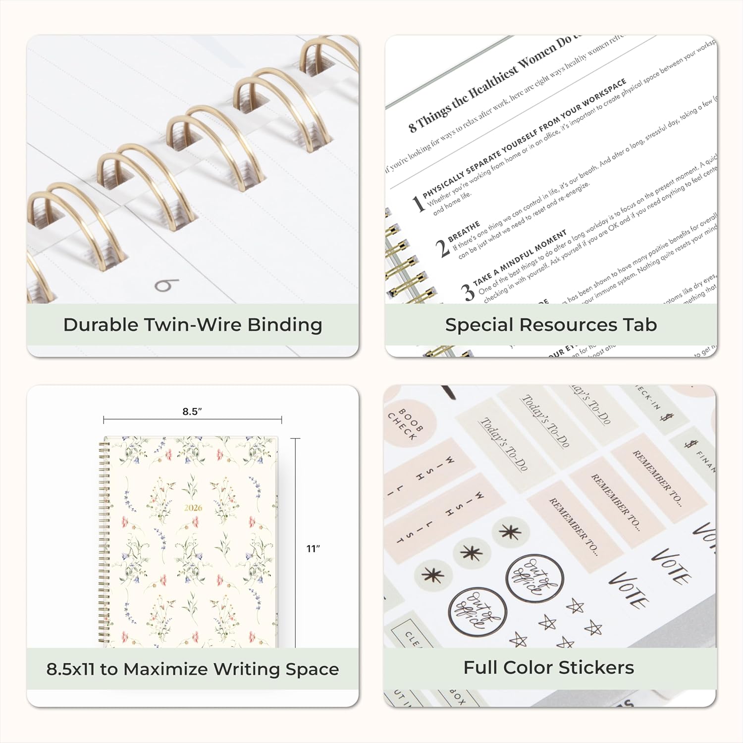 [EVERYDAY INSPIRATION] Thoughtfully designed with a monthly review section that helps you track progress and celebrate growth. Includes resource pages on physical wellness, financial wellness, and effective communication