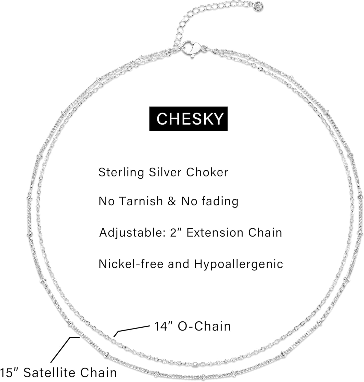 CHESKY choker necklaces pursue trendy & dainty & minimalist, it is the perfect gift for yourself and your loved ones.Our gold satellite chains necklace are thickly plated with multiple 14k gold plating to ensure that the necklace will last for a long time without fading and maintaining a shiny finish.The Gold Satellite Necklace is two thin chains sharing a lobster clasp, making it the perfect minimalist necklace for everyday wear, and can be layered with our other gold pendant necklaces for an even more beautiful look.