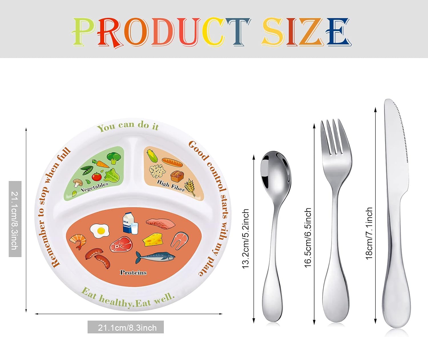 What You Can Get: you can get 1 piece of portion control plate, 1 piece of fork, 1 piece of spoon and 1 piece of knife, the nice combination and suitable collocation can meet your eating needs in your daily life