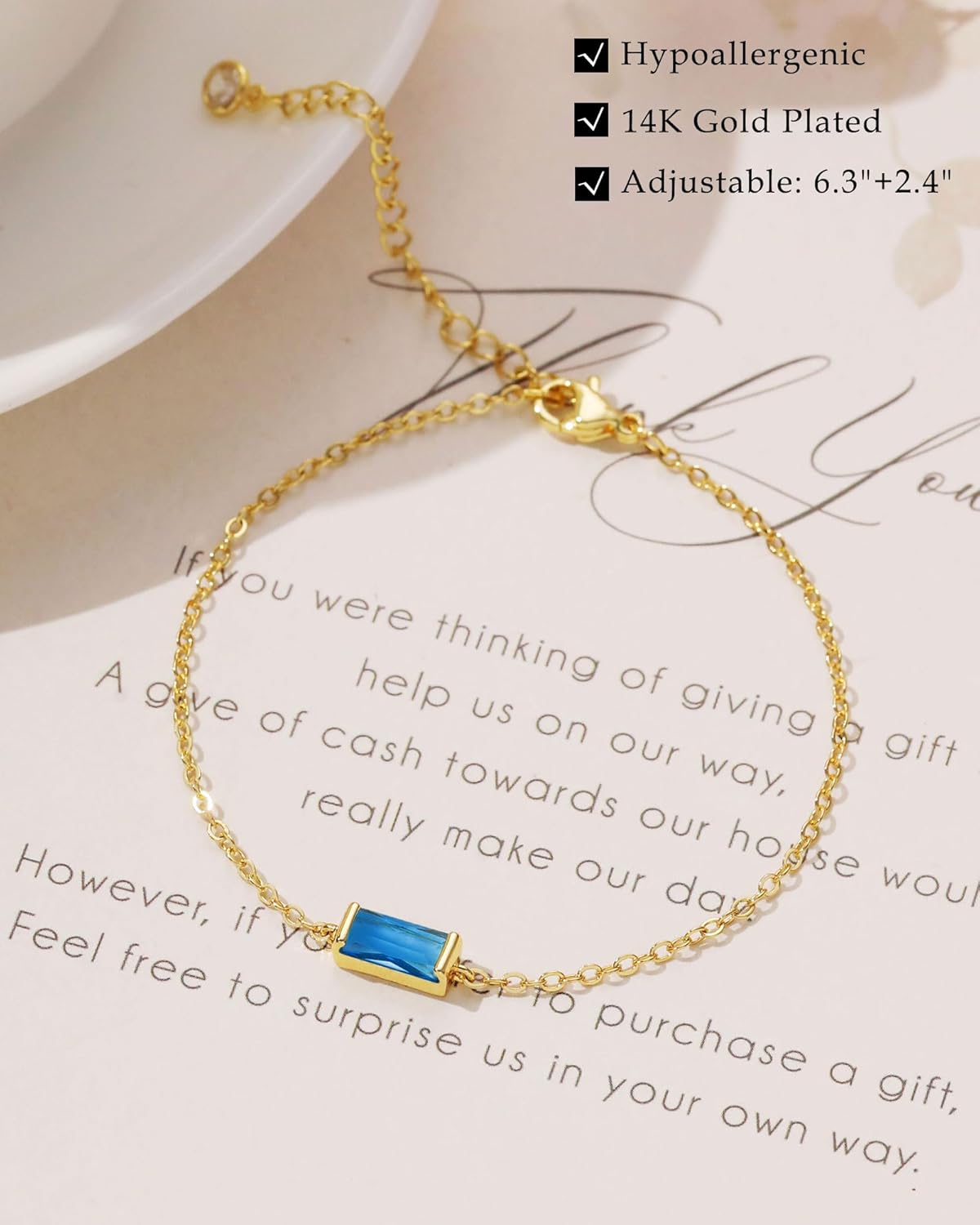 12 reviews for FUNEIA Birthstone Gold Bracelets for Women Non Tarnish Trendy Dainty 14K Gold Plated Bracelet Stack Stackable Blue Green May Emerald Friendship Bracelets Jewelry Gifts for Mom Best Friend