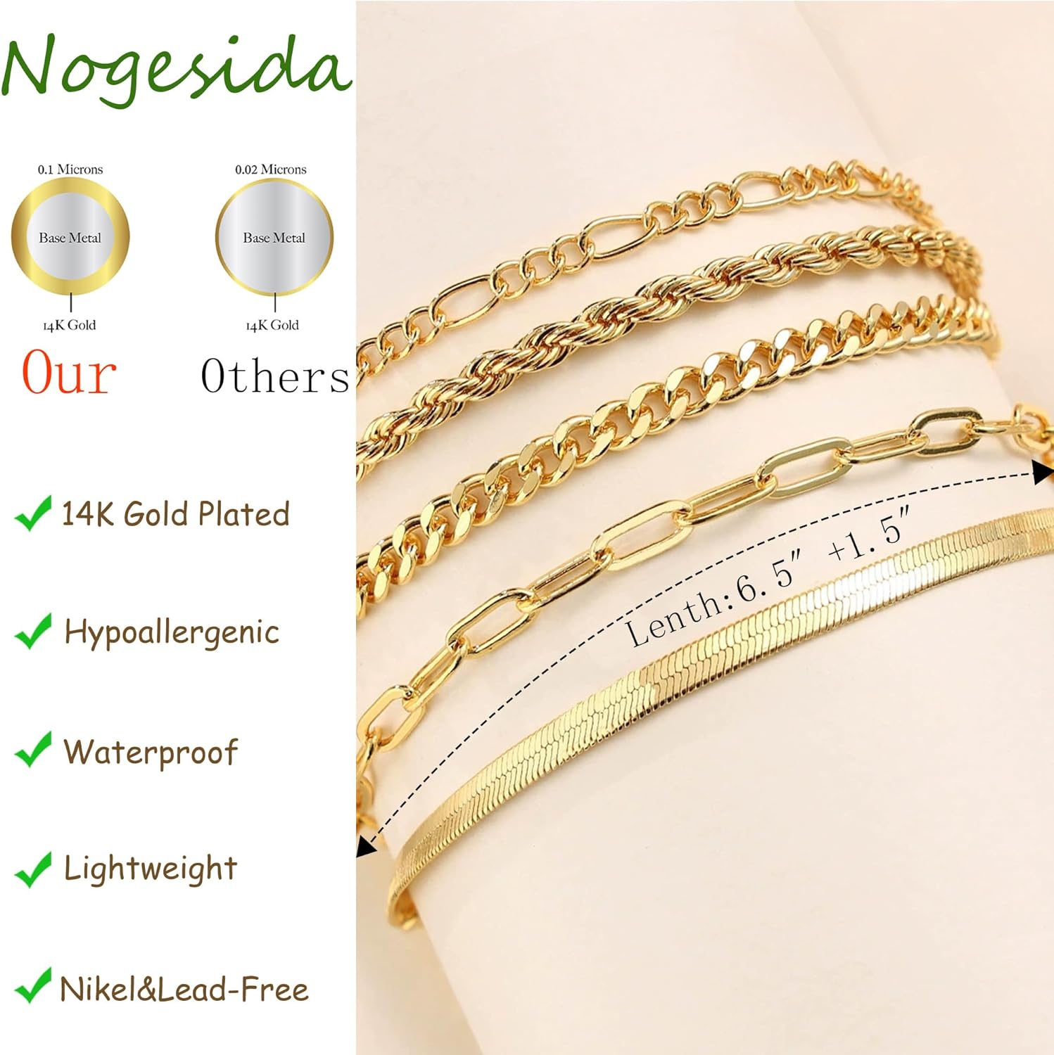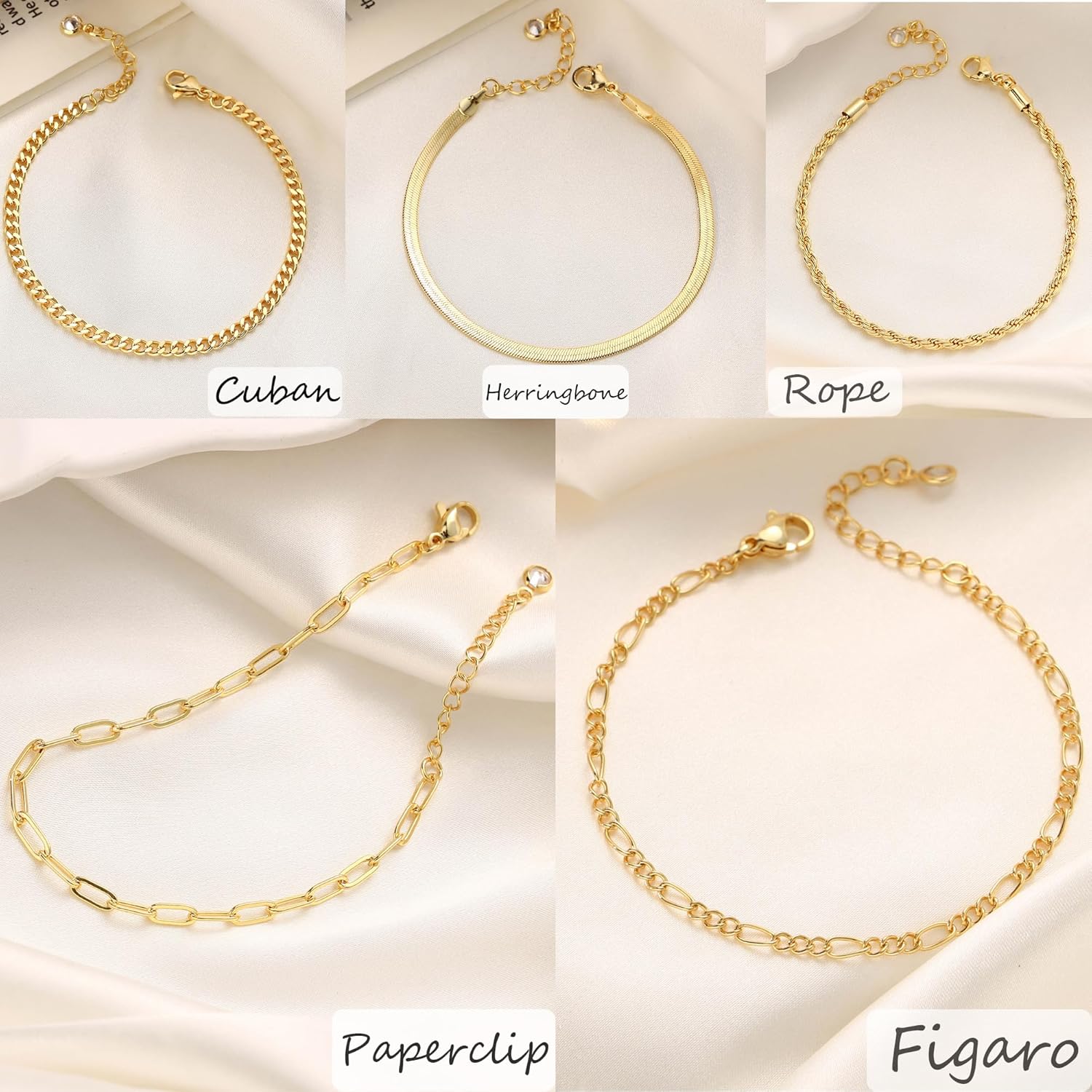 3 reviews for Gold Bracelets for Women, 14K Gold Plated Stackable Bracelet Stack Set Adjustable Charm Paperclip Chain Cuban Link Layered Waterproof Jewelry Sets Gifts for Women