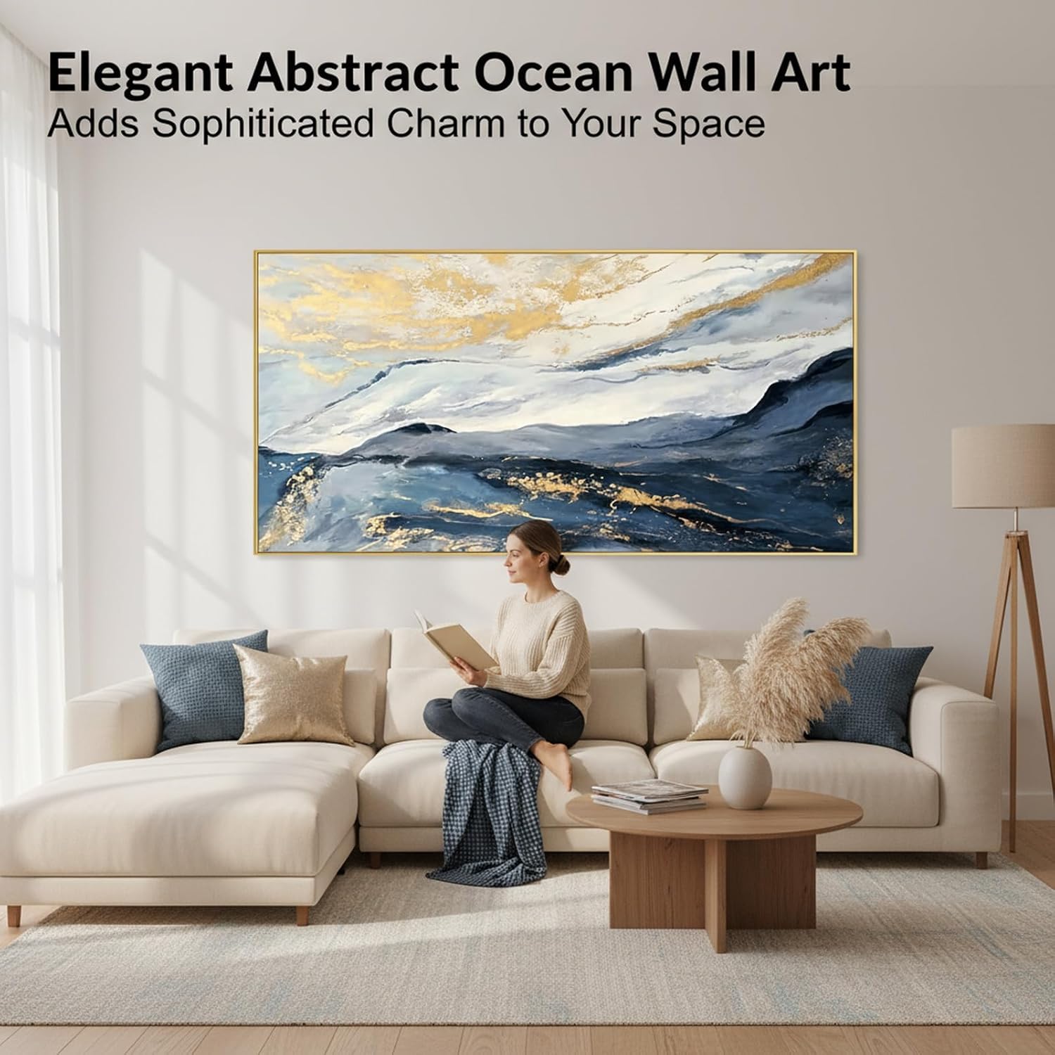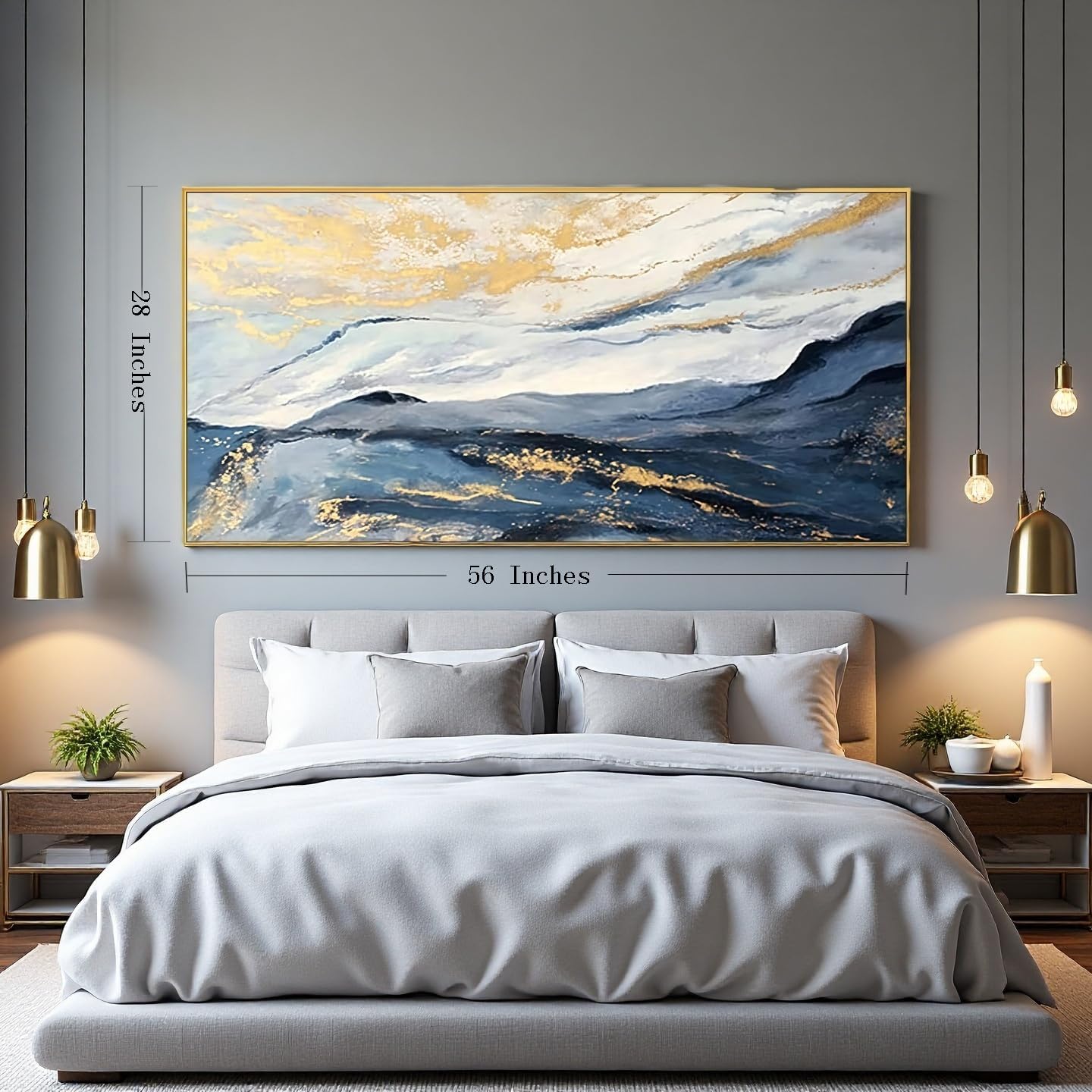 5 reviews for Large Blue and Gold Abstract Canvas Wall Art for Living Room, Framed Mountain Blue Oil Painting for Bedroom,Modern Landscape Office Wall Decor Ready to Hang 28×56 Inches
