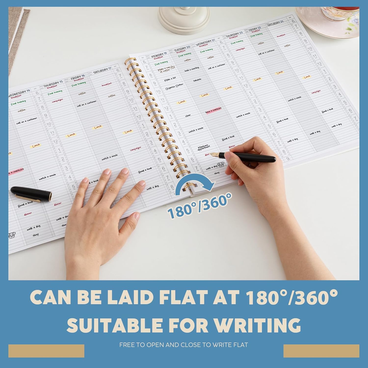 Durable Spiral Binding Cover: built to last, this planner features a sturdy spiral binding for smooth flipping and 180°or 360° lay flat design for easy writing; The elegant gold stamped cover text with beige design adds a professional yet stylish touch