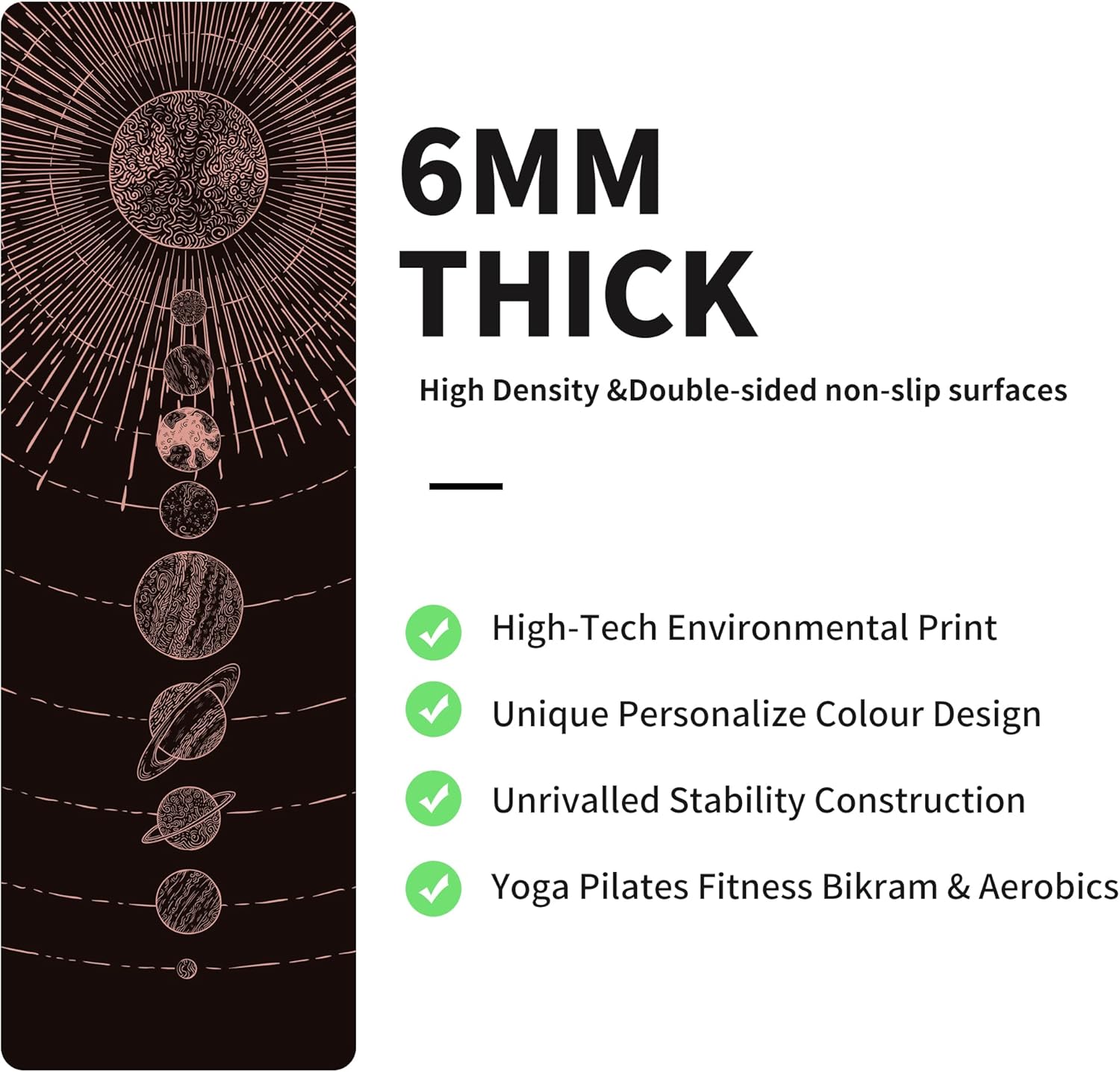 nuveti Yoga Mat Print Extra Thick TPE Non Slip Fitness Exercise Mat with Carrying Bag,72″x24″ Extra Thick 6MM Exercise & Workout Mat for Yoga, Pilates Fitness and Floor Exercises