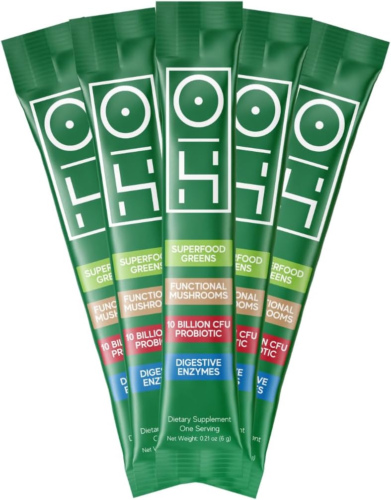 8 reviews for O H Optimal Human 5-Day Superfood Greens Travel Kit – Functional Mushroom, 10 Billion CFU Probiotic & Digestive Enzymes Blend – Includes Free Water Bottle – Daily Wellness Drink Packets