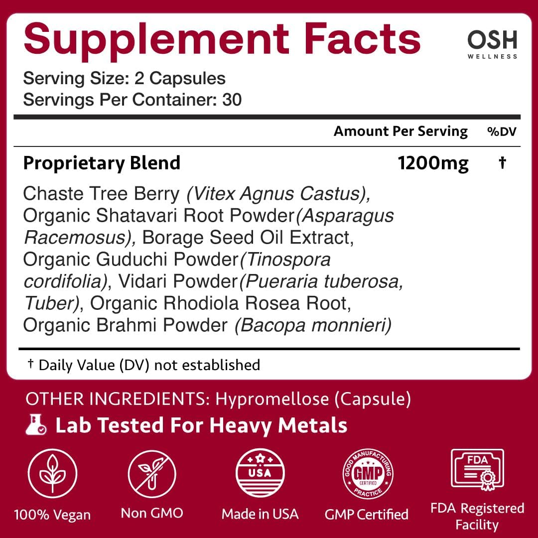 PMS & HORMONAL BALANCE FOR WOMEN: Natural supplement with Chasteberry to promote hormone harmony, emotional balance and overall menstrual wellness. A blend of Ayurvedic botanicals, including Shatavari, Guduchi, and Brahmi, helps support energy levels and healthy skin. So you can feel your best throughout the month.