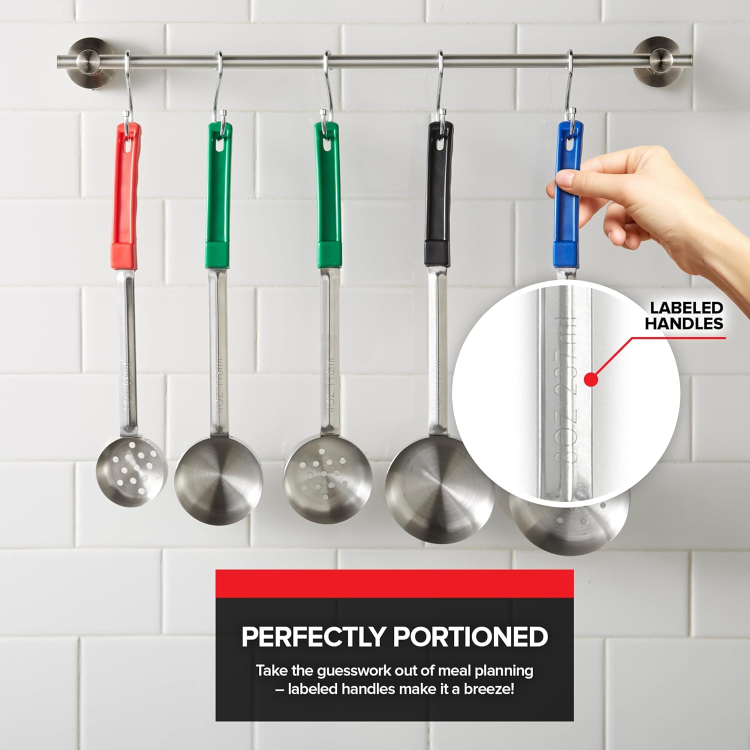 Portion Perfection: Take the guesswork out of meal planning! Our portion control serving spoons are designed to simplify your meal prep. Enjoy color-coordinated slotted and non-slotted spoons to make finding the right size fast and easy!