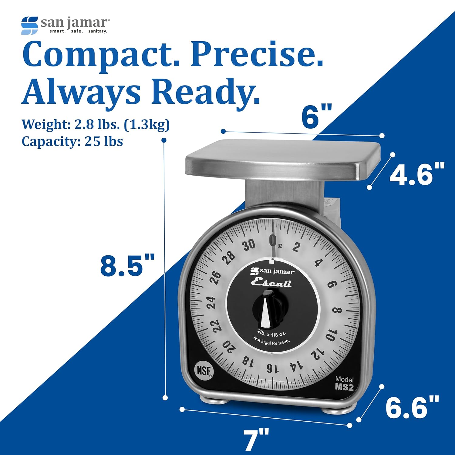 8 reviews for San Jamar Ms Series Mechanical Dial Scale Manual Food Scale with 2 Pound Capacity for Kitchens, Restaurants, And Cooking, Metal, 32 Ounces, Silver