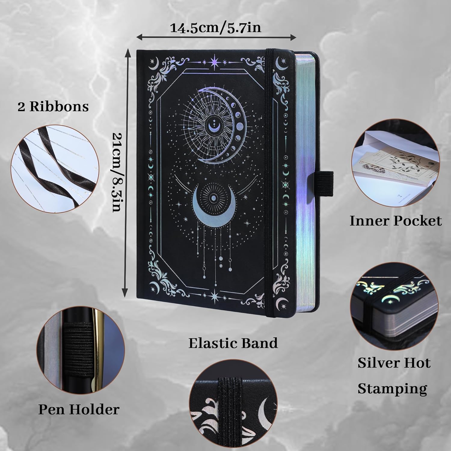 Multi-use: This journal comes with 2 bookmark ribbons, a back pocket, and a bonus beautiful sun and moon themed bookmark, making it perfect for journaling, note-taking, planning, and creative writing. Whether you are a student, professional, or artist, this journal will meet your daily needs and provide a reliable and beautiful space for all your writing work.