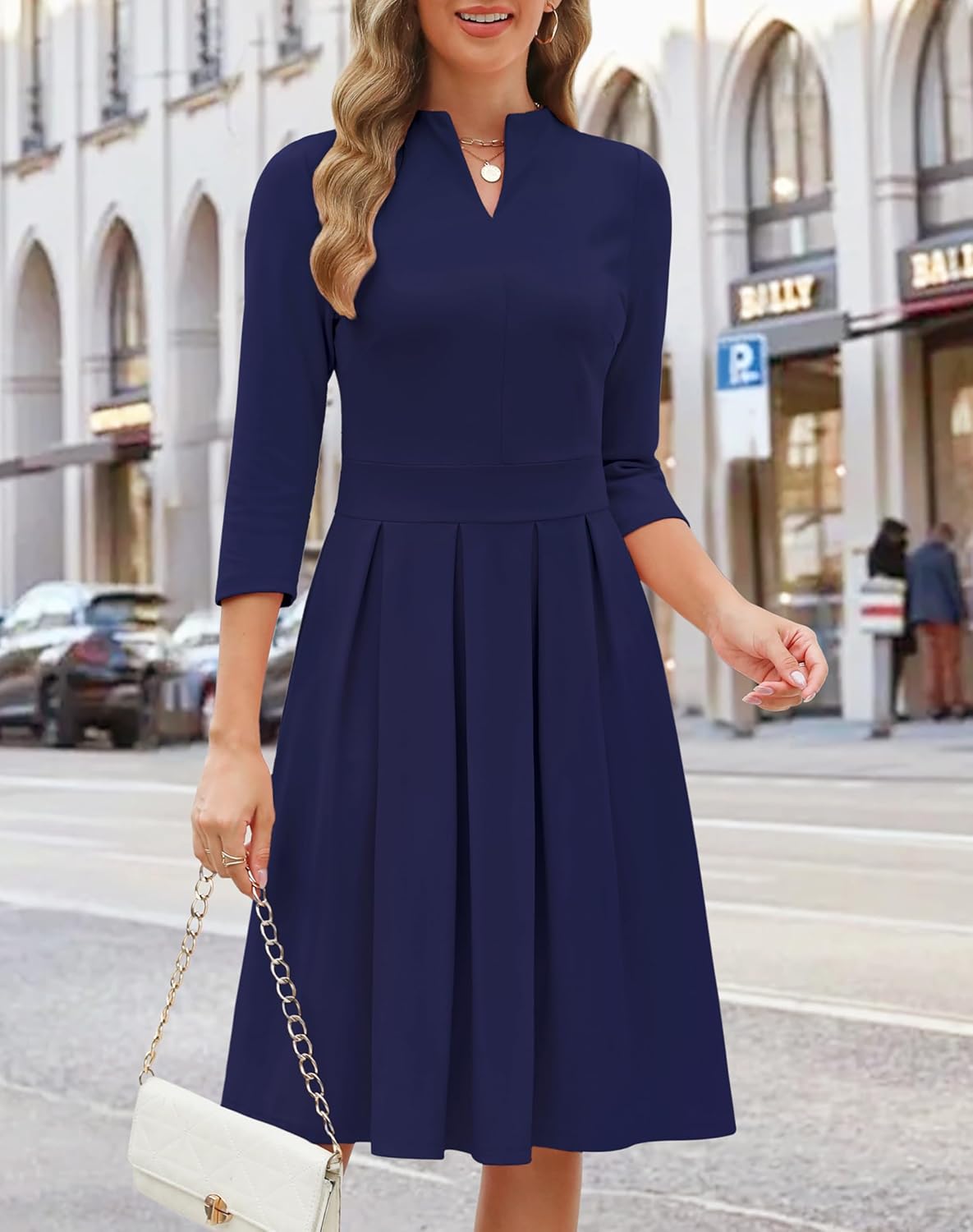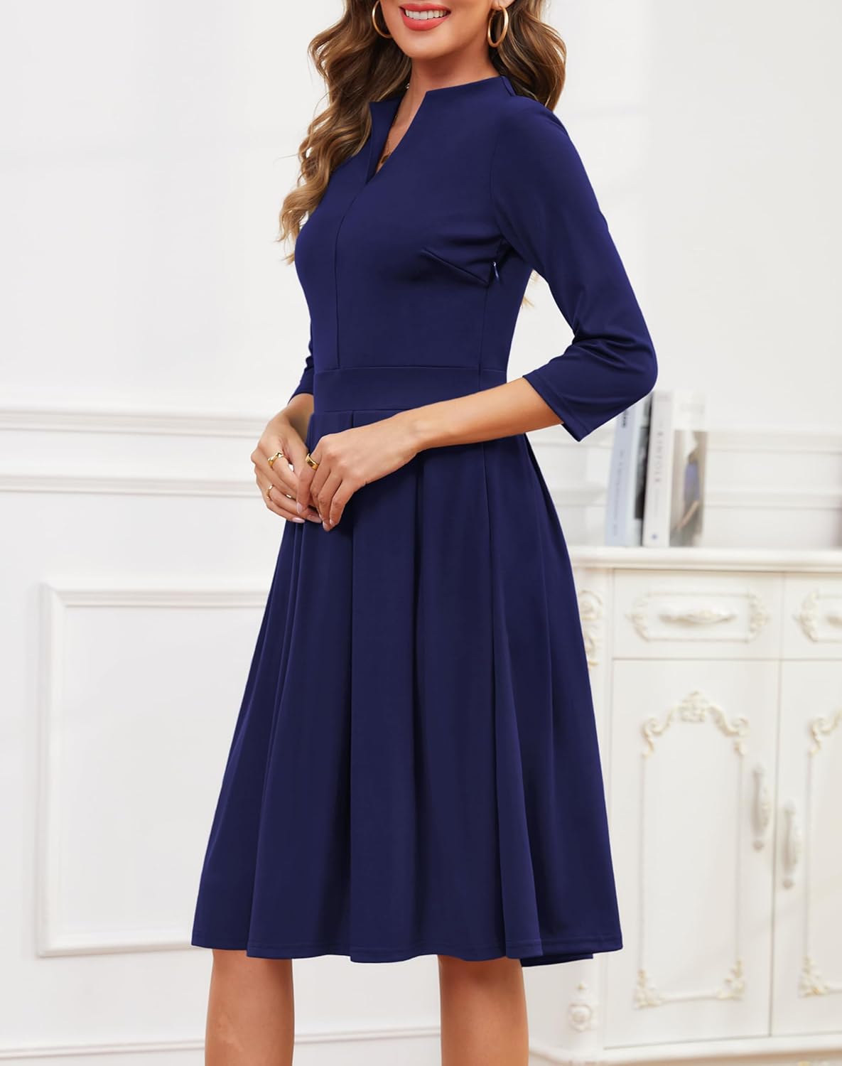 8 reviews for Zattcas Women 3/4 Sleeve Vneck Fall Dress Business Casual Work Teacher Church Modest Pleated Midi Dress with Pockets